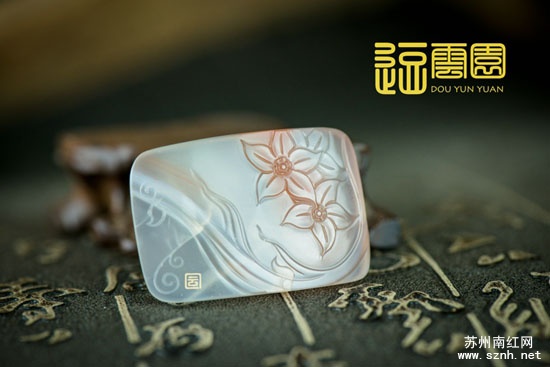 花作为雕刻的题材之一,象征着美好和生机,这块南红雕件雕刻的花是简单的五瓣花,虽然线条简单,却很流畅,给人赏心悦目的感觉。同名作品《南红玉雕蝴蝶牡丹精美作品》是满色满肉的材料雕刻的,朋友们可以对比欣赏一下哦。